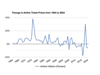 Airlines prices, as a whole, when factoring in inflation, have fallen since the 50’s. Since the 1978 deregulation, airlines have had more freedom and benefitted from lower overheads therefore able to operate at higher profit margins. These days, it’s a much different story with exponential growth volumes of air passengers, advancement in air travel technology, fewer stops, higher fuel prices and increased competition have all contributed to declining ticket prices (when factoring inflation).